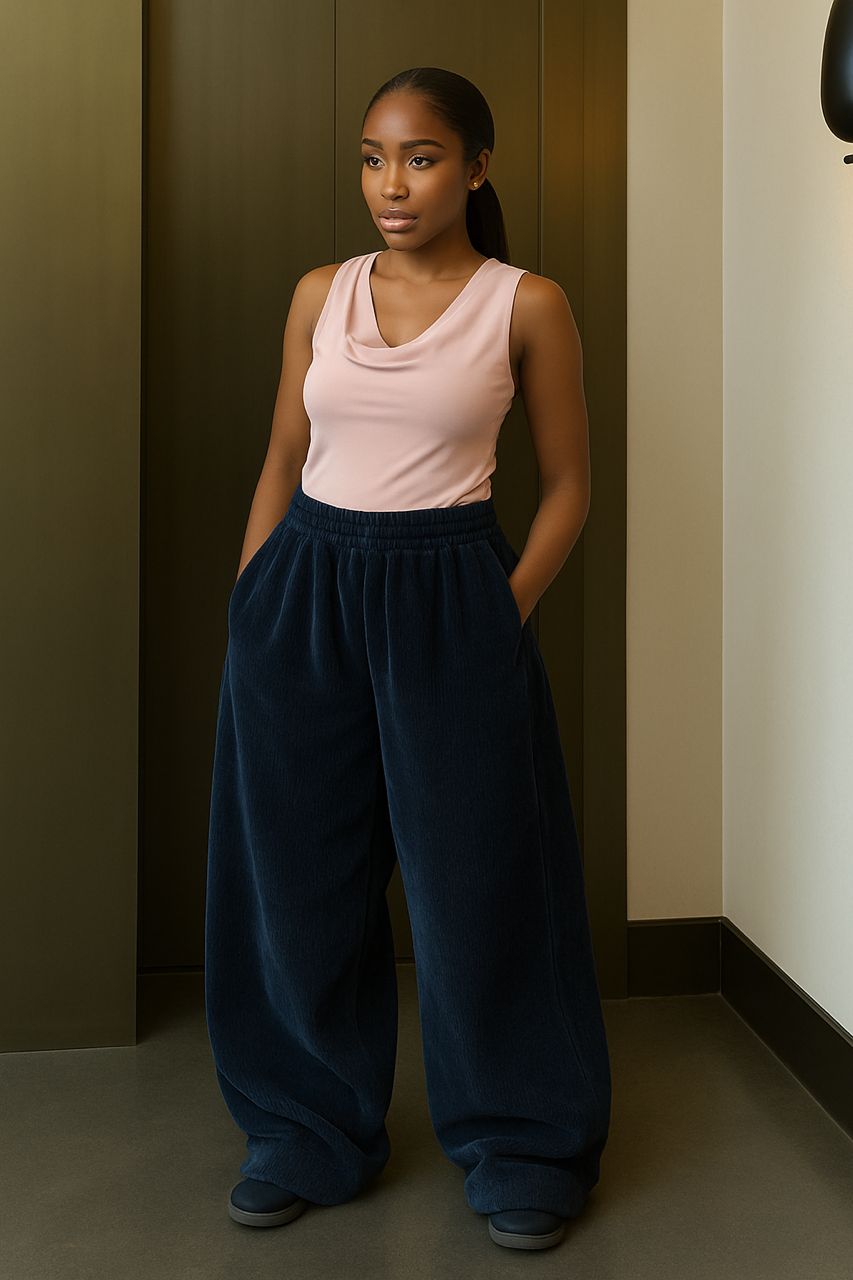Elevate your style with the Passion Shield Corduroy Pants — where timeless design meets effortless comfort. Crafted from soft, high-quality corduroy, these wide-leg pants are made to move with you. The relaxed silhouette and elastic waistband offer the perfect balance of structure and ease, making them ideal for everything from casual days to elevated nights out.